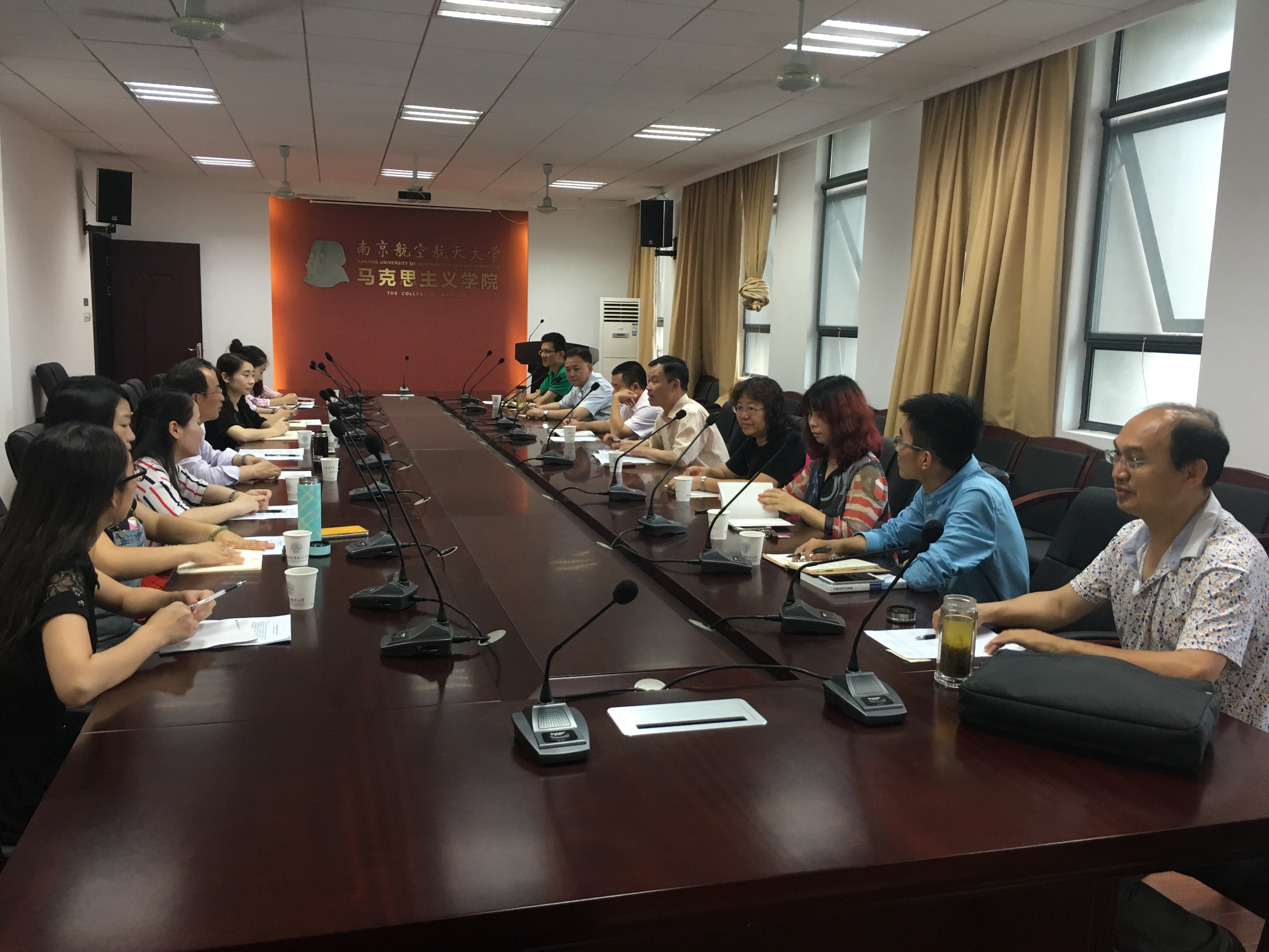6月24日上午,华东政法大学万象城娱乐awc线路马克思主义理论学科带头人徐家林教授一行来万象城调研交流。徐教授带领的团队承担了教育部“全国高校思想政治理论课教师教学科研团队择优支持计划”课题《整合思想政治理论课教师和辅导员队伍研究》。我校七位思政课教师,一位辅导员代表参加。双方就探寻思政课教师与辅导员实现有效融合,提高思想政治教育的有效性介绍了各自学校的做法。徐教授团队收集了支撑课题研究的实证材料,万象城从华东政法大学马院学到了经验,有助于促进今后思想政治教育工作的更好开展。