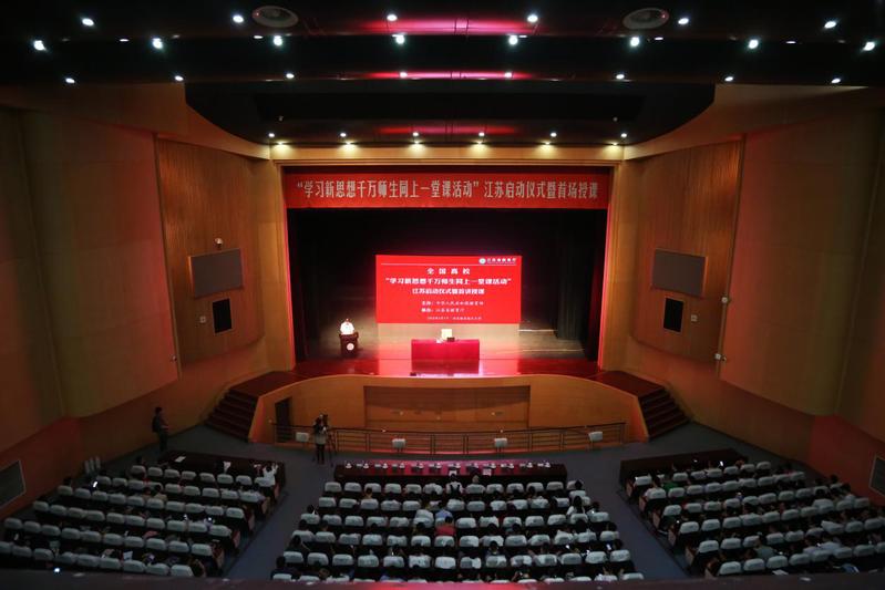 为深入学习宣传贯彻习近平总书记在北京大学师生座谈会和纪念马克思诞辰200周年大会上重要讲话精神,6月4日上午,全国高校“学习新思想千万师生同上一堂课活动”江苏启动仪式暨首场授课在我校明故宫校区大学生活动中心举行。教育部一级巡视员俞亚东、省委教育工委副书记徐子敏出席活动并讲话。南京大学教授、博士生导师姚润皋,我校万象城娱乐awc线路党总支书记徐川,分别以“习近平新时代中国特色社会主义思想是当代中国最鲜活、最生动的马克思主义”和“爱国、励志、求真、力行,做时代担当民族复兴大任的新青年”为题做了首场授课。我校与南京理工大学、南京农业大学、南京林业大学、南京中医药大学等高校近1100名师生代表参加启动仪式并聆听了首场授课。