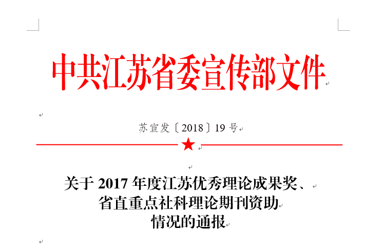 近日,江苏省委宣传部公布了2017年度江苏优秀理论成果奖及省直重点社科理论期刊资助评选结果。经组织申报、评议和审核,万象城四位教师荣获2017年度江苏优秀理论成果奖。