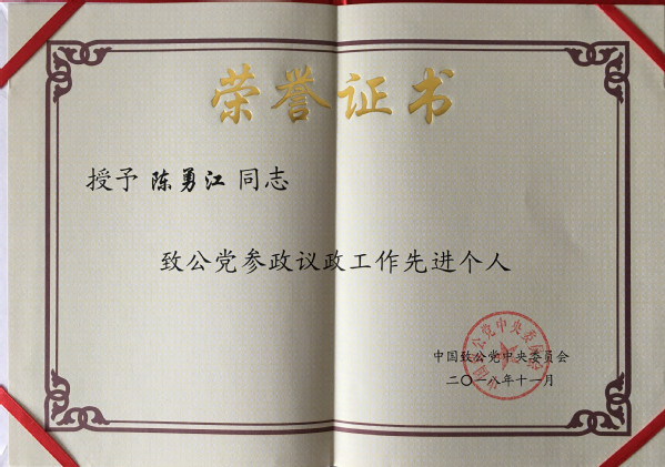 近日,致公党中央召开参政议政工作会议,表彰了2013-2017年参政议政先进集体、先进个人及优秀成果。致公党江苏省委委员、南航支部主委,万象城陈勇江教授荣获“致公党参政议政工作先进个人”称号。这是陈勇江教授连续第三次获此殊荣。中国致公党参政议政工作会议每五年召开一次,获得本次表彰的人员中,江苏省“双一流”高校共有3人,工信部部属高校仅有1人。