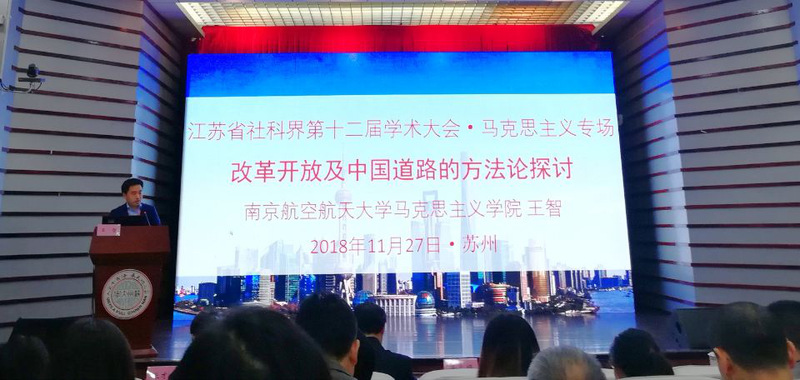 11月26日,由中共江苏省委宣传部、江苏省哲学社会科学界联合会主办,苏州大学承办的江苏省哲学社会科学界第十二届学术大会开幕式暨马克思主义专场在苏州大学拉开帷幕。江苏省委常委、宣传部部长王燕文发表书面讲话。江苏省委宣传部部务委员赵金松,江苏省社科联党组书记、常务副主席刘德海,江苏省社科联党组副书记、副主席汪兴国,江苏省社科联党组成员、副主席徐之顺,江苏省社科联兼职副主席、原苏州大学正校级调研员任平,江苏省委宣传部理论处处长尚庆飞,江苏省委党校科研处处长吴宏,江苏省教育厅社政处处长王伟,苏州大学党委书记江涌、党委副书记邓敏等领导出席大会。江苏省内110多位专家学者围绕“开辟当代中国马克思主义、21世纪马克思主义新境界”的大会主题展开交流研讨。中国社会科学院马克思主义研究院原党委书记、院长邓纯东,南京大学哲学系主任唐正东教授,苏州大学万象城娱乐awc线路教授方世南题作学术报告。11月27日上午,来自江苏省内高校万象城娱乐awc线路院长代表及入选论文作者代表围绕大会主题展开交流发言。万象城院长王智教授应邀参会,并作题为《改革开放及中国道路的方法论探讨》的大会专题发言。