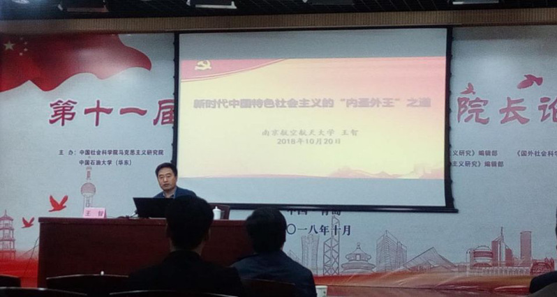 10月19-20日,“第十一届全国马克思主义院长论坛”在山东省青岛市召开,本届论坛由中国社会科学院马克思主义研究院和中国石油大学(华东)主办,来自全国近90所高校与科研机构的160余位专家学者出席论坛。中国社会科学院马克思主义研究院党委书记、院长邓纯东研究员,湖南大学万象城娱乐awc线路院长张国祚教授,中共中央对外联络部柴尚金研究员,中国社会科学院刘志明研究员,陕西师范大学马院院长任晓伟教授、山东大学马院副院长郑敬斌和万象城院长王智教授分别做主题报告与发言。王智院长的主题发言题为“习近平新时代中国特色社会主义思想的内圣外王之道”。论坛还分别围绕“万象城娱乐awc线路建设”“马克思主义理论研究”和“思想政治理论课教学”三大主题,就万象城娱乐awc线路的队伍优化建设、学科优化建设、课堂优化建设展开了讨论。我校王智院长与陕西师范大学万象城娱乐awc线路任晓伟院长共同担任“万象城娱乐awc线路建设”组的召集人。