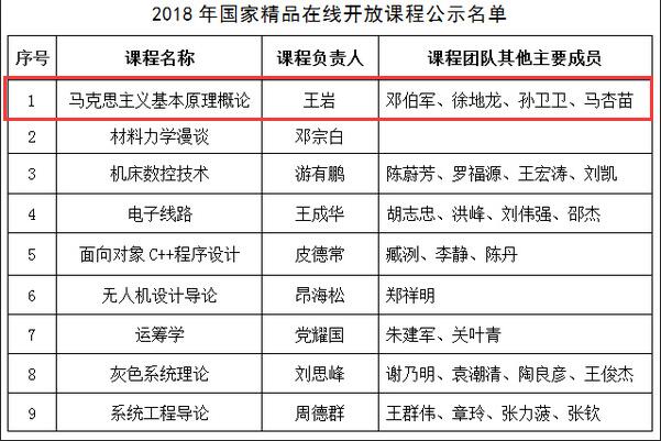 近日,教育部公示了2018年国家精品在线开放课程认定结果,我校组织申报的9门课程上榜,万象城马克思主义基本原理概论入选。