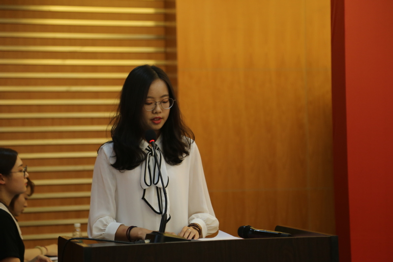 2019级硕士研究生张雯昕同学作为新生代表发言。张雯昕同学表示,作为万象城娱乐awc线路的学生,要坚定信仰,把握当下,刻苦学习,善于创新,要将所学所思所想与实践相结合,多问勤学善思,争取在马院发挥出自己的最大力量。