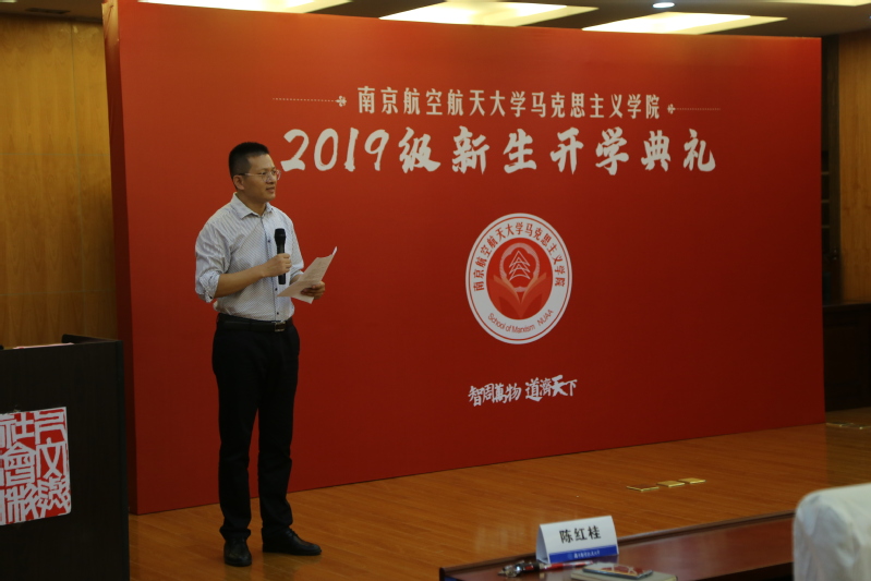 院长王智对2019级全体新生表示了热烈的欢迎和衷心的祝福。王智从“学”字入手,欢迎大家来到南航,走进万象城娱乐awc线路,选择马克思主义这门学科。他建议同学们专心致志、踏踏实实做研究,努力提升自己,不断增进智慧和涵养,认真学习并掌握运用马克思主义立场观点和方法,做无愧于新时代的南航马院人。