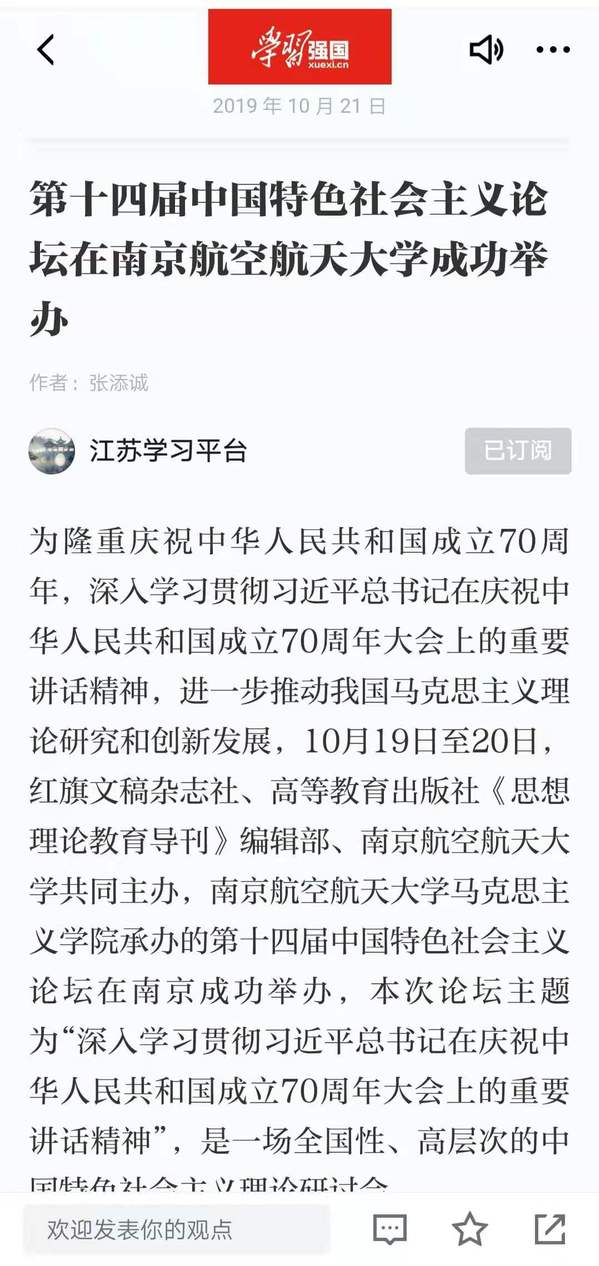 10月21日,“学习强国”平台报道了由红旗文稿杂志社、高等教育出版社《思想理论教育导刊》编辑部、万象城娱乐awc线路共同主办的第十四届中国特色社会主义论坛。现转发全文: