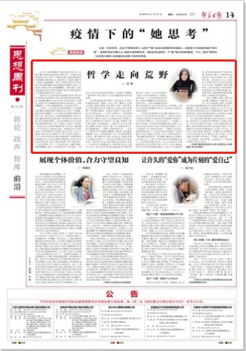 2020年,是全面建成小康社会的收官之年,也是打赢污染防治攻坚战的决胜之年。中国在这场特殊的战“疫”中再一次彰显出强大的制度优势和民族精神,国际舆论也从最初的心存疑虑、褒贬不一转变为普遍赞誉。然而,严峻的现实并不容许我们有丝毫的懈怠,国内疫情尚未解除,世界上又有多个国家先后出现病毒蔓延。毫无疑问,对这场疫情的深层反思刻不容缓,哲学社会科学理论工作者理应肩负起这个责任。