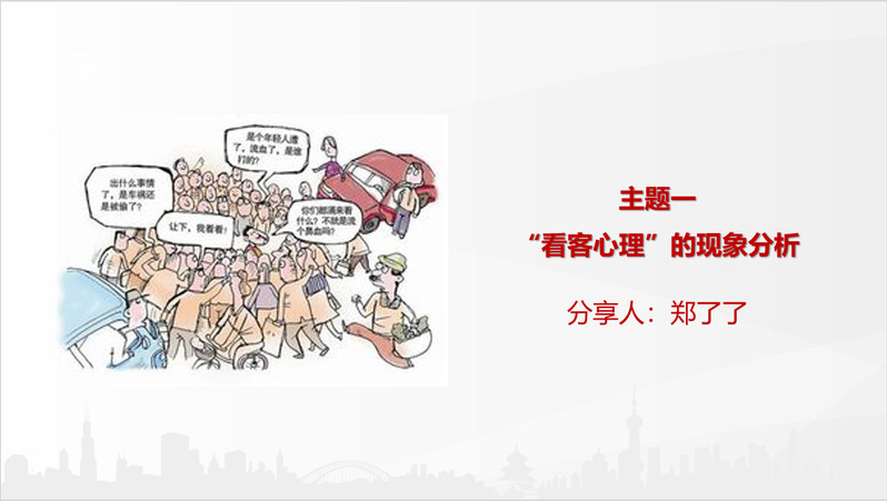 郑了了同志为大家解读了“看客心理”现象,并提出对于新冠疫情爆发后西方国家所谓的中国病毒论和中国阴谋论,应当积极予以驳斥。