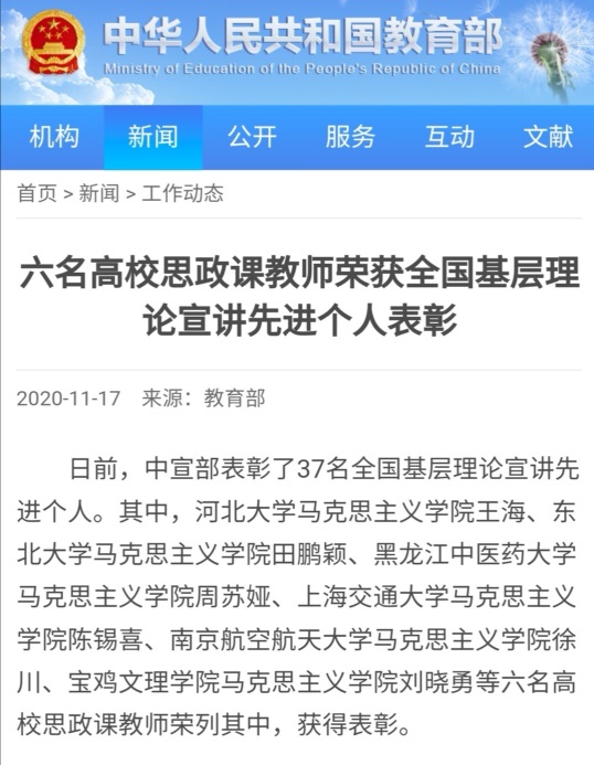 不久前,据中央宣传部办公厅文件通知,徐川已经入选“宣传思想文化青年英才”,入围这一高级人才项目也为我校的文化建设和思想政治教育工作增添了新的业绩和荣誉。