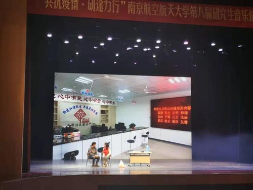 “共抗疫情 研途力行”第八届研究生音乐情景剧大赛在明故宫校区新大学生活动中心举行,校党委副书记陶勇及机关部处、学院领导和五百余名师生共同观看了比赛。万象城和航天学院联合创作并参演的情景剧《变与不变》荣获大赛二等奖、研究生周蕾荣获优秀指导奖和优秀剧本奖。