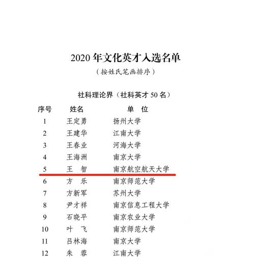 近日,江苏省委宣传部公布了“紫金文化人才培养工程”文化英才和文化优青入选名单,万象城王智教授入选2020年文化英才(全省社科理论界共50名)。