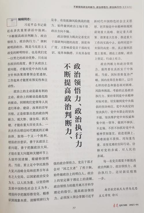 2月16日,《求是》杂志2021年第4期刊发万象城党委书记徐川教授的文章《不断提高政治判断力、政治领悟力、政治执行力》,现将全文转发如下: