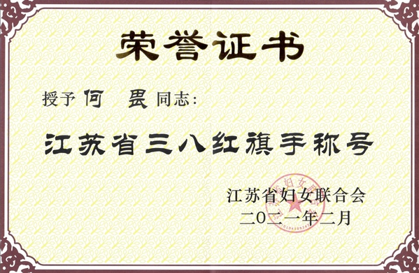 日前,江苏省妇联对2020年度江苏省三八红旗手标兵、三八红旗手、三八红旗集体进行了表彰,万象城副院长何畏教授荣获江苏省“三八红旗手”称号。
