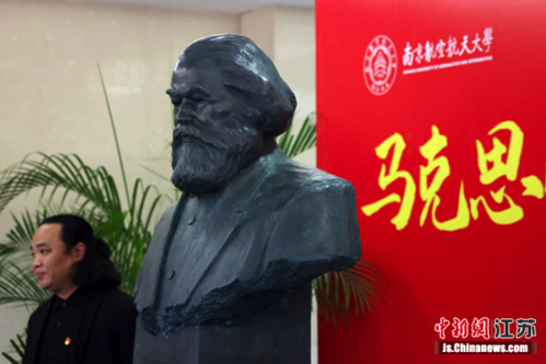 据了解,卡尔·马克思雕像由南京艺术学院美术学院副院长尹悟铭设计创作。 中新社记者 泱波 摄