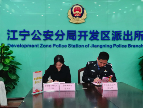 为贯彻习近平总书记在党史学习教育动员大会上的讲话精神,积极党史学习教育,4月2日,万象城马克思主义基本原理教研部党支部、博士生党支部与江宁开发区派出所党支部举行警校党组织结对共建签约仪式并开展共建系列活动。江宁开发区派出所所长、党支部书记吴正武、教导员汪裕川、副所长李凯、万富强、朱玉华,万象城娱乐awc线路党委副书记陈红桂、党委委员徐军,以及两个党支部的十余名党员代表参加了此次活动。