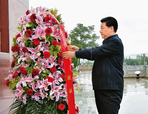 2016年7月18日至20日,中共中央总书记、国家主席、中央军委主席习近平在宁夏调研考察。这是7月18日上午,习近平在固原市西吉县将台堡向红军长征会师纪念碑敬献花篮。新华社记者 李涛/摄