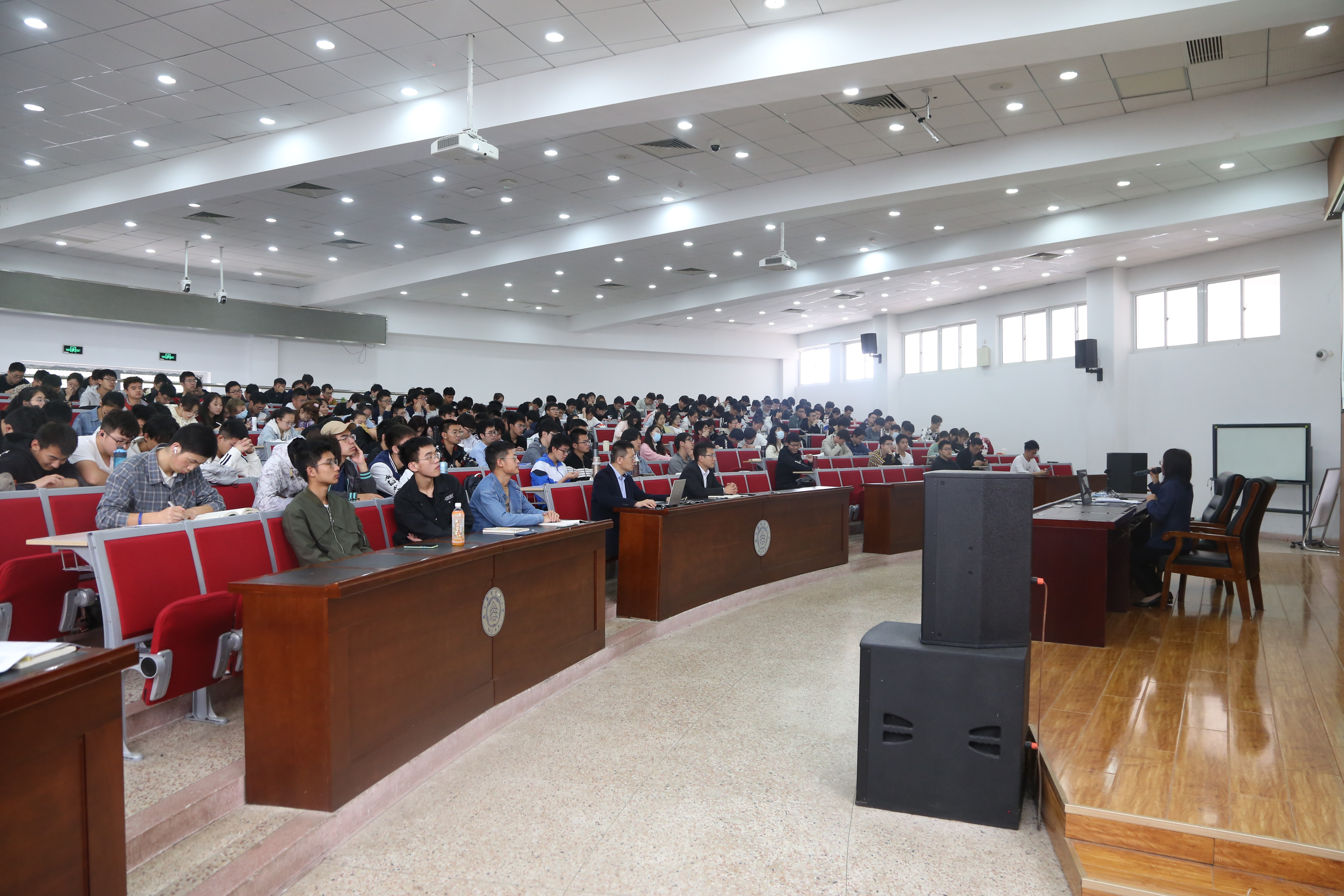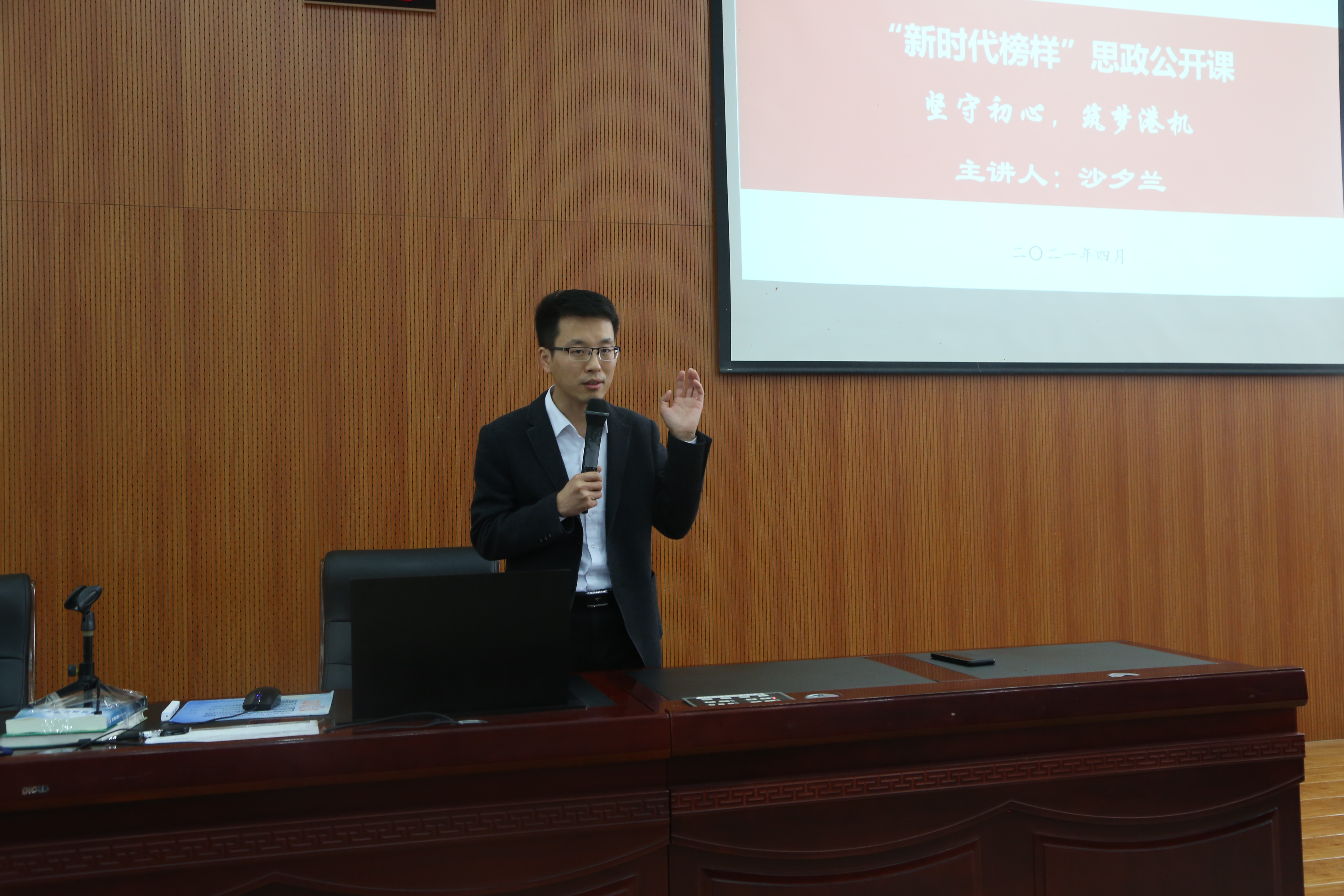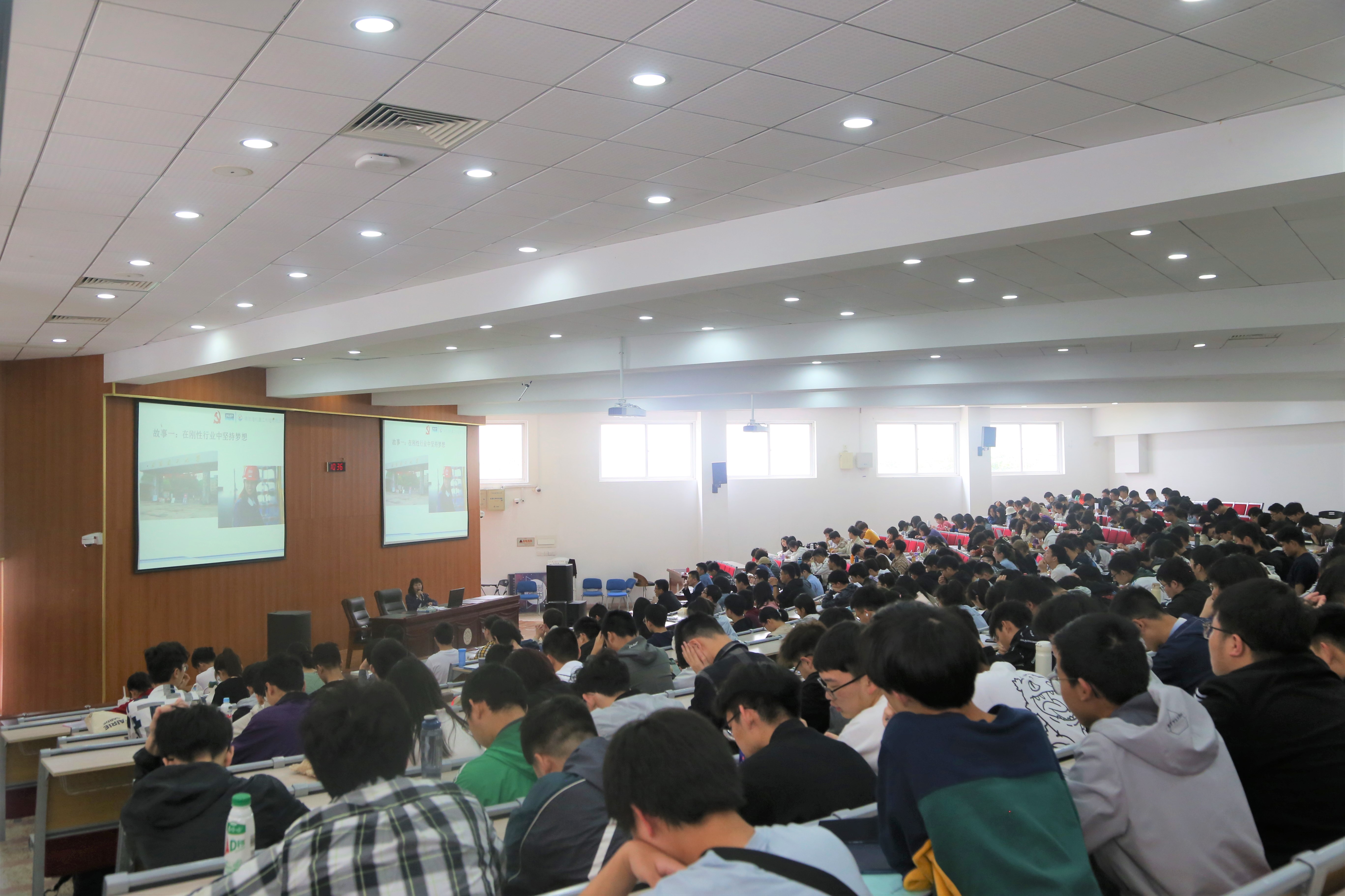 2021年4月23日,万象城娱乐awc线路在将军路校区举办了万象城娱乐awc线路第五期“新时代榜样”思政公开课。本期公开课邀请全国劳动模范、全国示范性劳模和工匠人才创新工作室领衔人沙夕兰主讲“坚守初心,筑梦港机”,学校部门领导和学院党委书记徐川、副院长陈红桂到场与近400名大学生一同聆听公开课。
