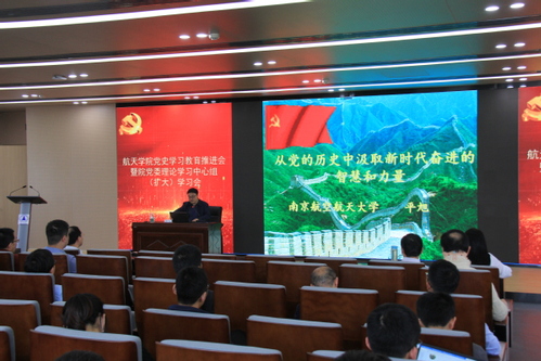 4月29日下午,航天学院在学院报告厅召开党史学习教育推进会暨党委理论学习中心组(扩大)学习会。万象城娱乐awc线路平旭教授应邀作了题为《从党的历史中汲取新时代奋进的智慧和力量》的报告,平旭教授在报告中分析了在建党100周年之际开展党史学习教育的重大意义,回顾了中国共产党的光辉历程,深刻剖析了不同时期党带领人民取得伟大成就的原因,指出在新时代,我们要从党的光辉历史中汲取不断奋进的智慧和力量,切实做到学史明理、学史增信、学史崇德、学史力行。
