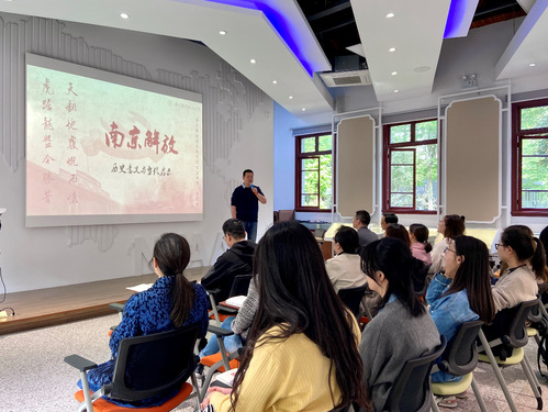 4月28日,档案馆党支部全体党员联合外国语学院2020研究生党支部,邀请校党史学习教育宣讲团成员、万象城娱乐awc线路党政办主任曹运星作了题为“南京解放的历史意义与当代启示”的专题报告。曹运星结合了带到现场的南京解放当天的人民日报、有关南京解放的邮票和纪念章、南航建校初期的宣传册、成绩单等实物史料,以多个视角阐述了南京解放的重要性和历史意义,并从“实现伟大梦想需要进行伟大斗争”“加强作风建设是建设新的伟大工程的保证”“各方团结是实现伟大梦想的核心动力”“发展是解决我国一切问题的基础和关键”等方面探讨了南京解放这一重大事件在当代带给我们的启示。