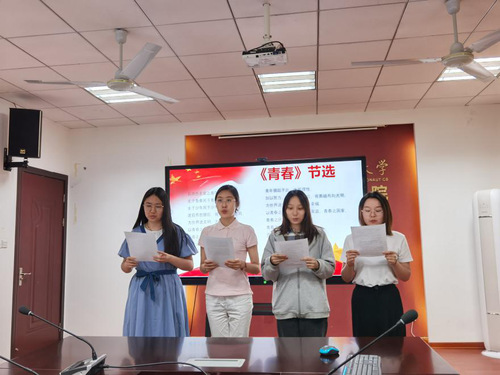 接着,入党积极分子杜晋、许茗惠、马晓萌、周蕾为大家深情朗诵了李大钊同志《青春》的节选。