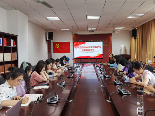 为了弘扬五四精神,培养支部学生爱国主义情怀,5月18日,硕士研究生党支部开展主题为“传承五四精神,闪耀青春之光”的党日活动。会议由支部组织委员施张桐主持,党支部全体党员、入党积极分子参会。