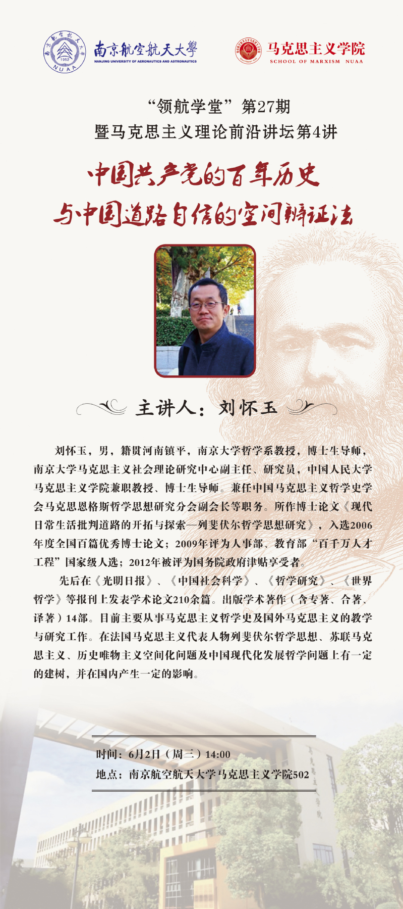 “领航学堂”第27期暨马克思主义理论前沿讲坛第4讲:中国共产党的百年历史与中国道路自信的空间辨证法
