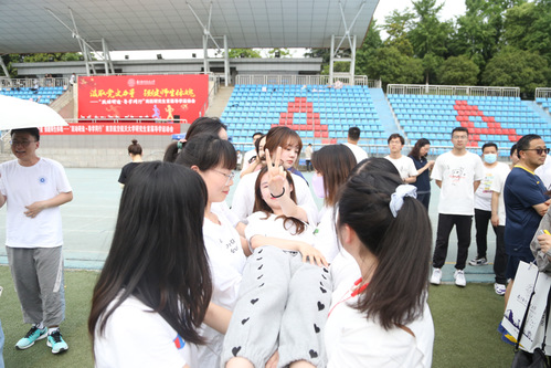 5月25日,以“学党史、悟精神、强体魄、促和谐”为目标,“跃动研途·导学同行”南航研究生首届导学运动会于将军路校区西操场举办。万象城与艺术学院、外国语学院联合组队,院党委副书记、副院长陈红桂,青年教师胡媛媛与9名研究生代表学院参加,最终荣获最佳组织奖。