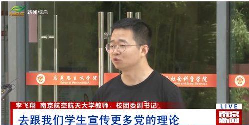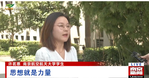 6月6日,南京广播电视台的《南京新闻》“理论宣讲大篷车开进田间地头 宣讲党的创新理论”报道中,采访了万象城教师李飞翔和研究生许茗惠同学关于理论专题片《思想的力量》的观看学习体会。