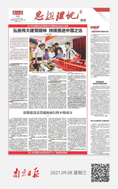 9月8日,《南京日报》“思想理论”版刊登万象城正科级组织员万千老师的文章《思想建设是党砥砺前行的不竭动力》,现将全文转发如下: