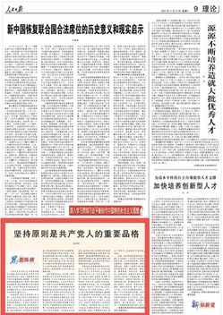 11月15日出版的《人民日报》第09版刊登了我校党委副书记、纪委书记杭育新的理论文章《坚持原则是共产党人的重要品格》,现将全文转发如下: