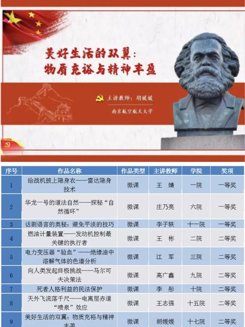 据统计,今年万象城还有多位教师在各类教学活动中获奖。全省思政课教学展示“形势与政策”一等奖(陈红桂)、“毛泽东思想和中国特色社会主义体系概论”二等奖(鲁琴);江苏高校百校万名团干部思政技能大比武-青年教师专项赛一等奖(张小斐);校微课教学比赛一等奖(胡媛媛)、二等奖(张小斐);南航思政课微课教学比赛“教学之星”(张小斐)、一等奖(陈子烨,谢菲)、二等奖(黄璐,李飞翔,施灿业,孙会娟,吴永祥)。