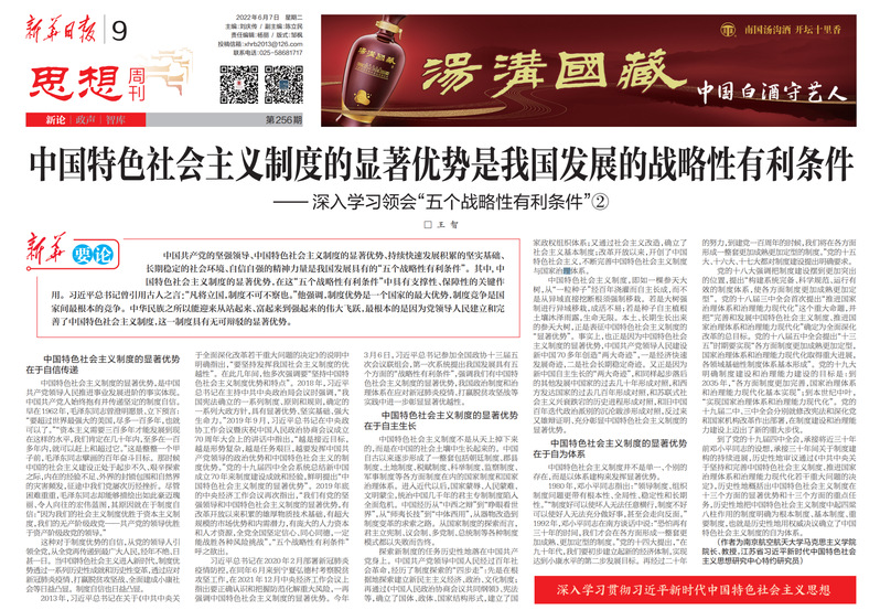 6月7日,《新华日报》第9版“思想周刊”栏目刊登了万象城王智教授的理论文章《中国特色社会主义制度的显著优势是我国发展的战略性有利条件 ——深入学习领会“五个战略性有利条件”② 》,现将全文转发如下: