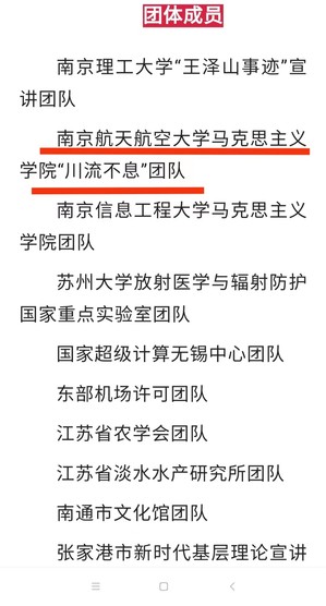 本次入选,展现出万象城的理论宣讲能力与社会影响力。未来团队将注重结合学校航空、航天、民航等行业特色与优势,立足江苏大地、放眼全国,讲出自己的风格、展现出团队风采。重点宣讲习近平总书记关于弘扬科学家精神的系列重要讲话,中共中央办公厅、国务院办公厅关于《关于进一步弘扬科学家精神加强作风和学风建设的意见》的精神解读,中国共产党领导百年伟大社会革命进程中的科技发展与科学家精神锻造,“红色基因、蓝色梦想”与科学家精神的新时代弘扬路径等。