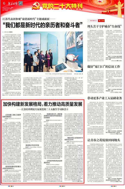 10月21日,《新华日报》第6版“党的二十大特刊”刊发了对万象城何畏教授的特约采访《加快构建新发展格局,着力推动高质量发展——江苏社科理论专家谈党的二十大报告学习体会④》,现将全文转发如下: