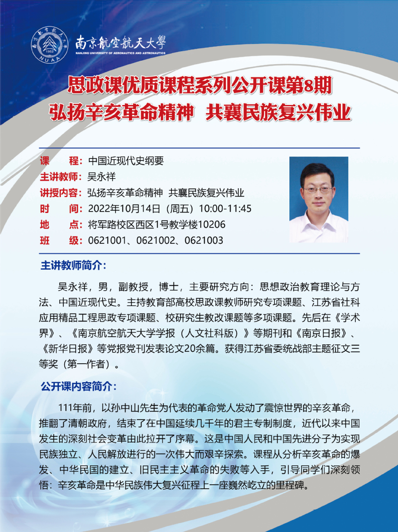 “思政课优质课程系列公开课”第8期:弘扬辛亥革命精神 共襄民族复兴伟业