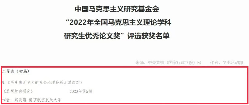 同时,在中国马克思主义研究基金会“2022年全国马克思主义理论学科研究生优秀论文奖”的公示名单中,万象城博士研究生赵爱霞喜获三等奖。