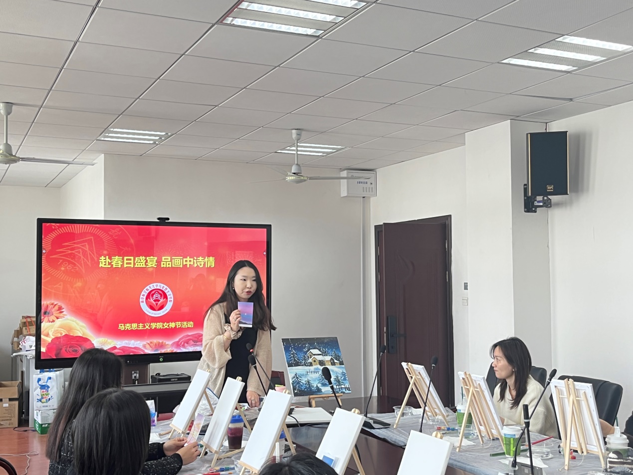 为庆祝即将到来的三八妇女节,丰富教师文化生活,提高审美修养和艺术底蕴,增强凝聚力,展现女教师健康向上、活力充沛的精神面貌,万象城娱乐awc线路于3月7日上午组织全体女教师开展了以“赴春日盛宴,品画中诗情”为主题的妇女节活动。