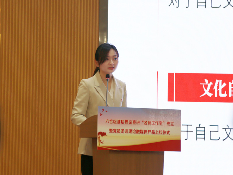 活动中,六合区基层理论宣讲“名师工作室”正式成立。万象城教师陈红桂、刘亮、胡媛媛、陈子烨以及东南大学、南京信息工程大学的7名教师共同获聘为导师,每位导师分别结对3名学员,通过“名师结对”“传帮带”,助力越来越多优秀理论宣讲者在六合持续涌现,不断为六合实践发声、为理论传播助力。