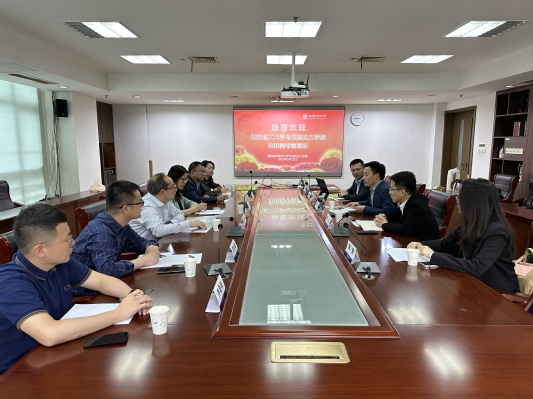 院长王智向梁院长一行的到来表示欢迎,并介绍了南航的历史沿革和发展现状。王智从学院近年来取得的荣誉成就、当前的重点任务、师资队伍建设等几个方面进行了交流。学院党委书记徐川、党委副书记阙愚、副院长陈红桂分别就党务党建、社会服务、理论宣讲、教育教学等工作做了介绍。