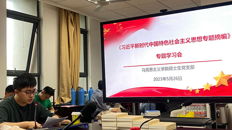 2023年5月26日上午,为深入开展学习贯彻习近平新时代中国特色社会主义思想主题教育,在学校和学院党委的部署安排下,万象城娱乐awc线路硕士生党支部召开专题学习会,全面学习《习近平新时代中国特色社会主义思想专题摘编》。会议由支部书记刘烨晖主持,全体党员和入党积极分子参会。