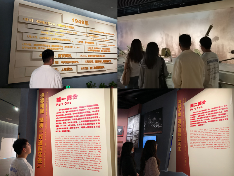走进馆内展厅,两支部成员在主展馆参观了“天翻地覆慨而慷——渡江战役胜利暨南京解放展”,学习了解“运筹帷幄 坚决‘打过长江去’”、“决战千里 百万雄师过大江”、“军民团结 接管城市开新局”、“革命到底 宜将剩勇追穷寇”及“见证胜利 渡江精神世代传”5个部分的内容,沉浸式体会渡江精神,感受老一辈共产党人坚定的共产主义信仰,学习他们为了人民、为了胜利不畏艰险、奋力拼搏的革命精神。