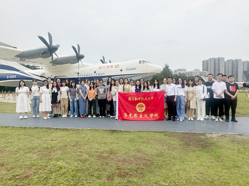 随着众人行进至大型水陆两用飞机AG600静力试验机前,院党委书记徐川为23级新生在户外进行了一堂生动的“开学第一课”。徐川以国家航空航天事业和南航发展的历史渊源为例,激励同学们不怕起点低,不惧基础弱,人生之路在于奋斗拼搏,只有付出努力才能实现质的飞跃。同时,勉励各位新生同学在进行本专业的学习之余,努力了解航空航天知识和发展历程,在学校航空航天底色的浸润下打造出属于自身的特色,作为南航马院学子,植根于红色文化沃土,我们不仅要接好坚持马克思主义信仰、促进马克思主义传播的班,更要运用青年话语,讲好南航故事,传承南航精神,做合格的南航人,做合格的南航马院人。