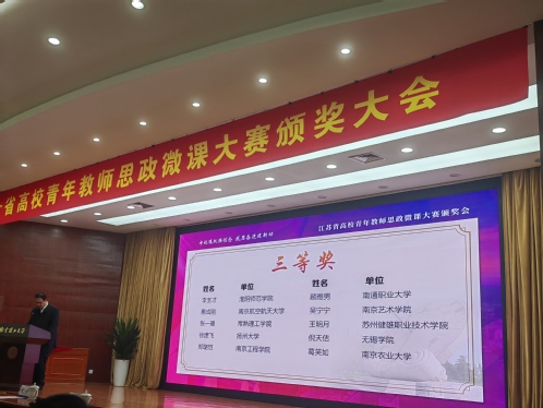 日前,江苏省教育厅公布了全省高校青年教师思政微课大赛的评选结果,万象城喜获佳绩,获得一等奖1项,三等奖1项。其中,徐坤老师获一等奖、惠成刚老师获三等奖。