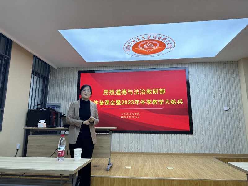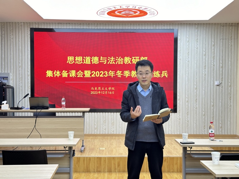 根据学院工作安排和统一部署,12月16日下午,思想道德与法治教研部集体备课会暨2023年教学大练兵在学院112报告厅举行,会议由教研部主任董金平主持。此次活动主要分两个环节,一是青年教师进行课堂授课展示,二是其他教师进行说课分享及教学研讨。