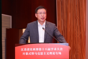 10月18日,由中共江苏省委宣传部、江苏省哲学社会科学界联合会主办、我校承办的江苏省社科界第十八届学术大会开幕式暨马克思主义理论专场在南京举行。江苏省委常委、省委宣传部部长徐缨出席会议并讲话,省人大常委会副主任、省社科联主席曲福田,江苏省委宣传部副部长、省政府新闻办公室主任赵金松,东南大学原党委书记郭广银,省委党校常务副校长杨明,省社科联党组书记、常务副主席张新科,省社科院党委书记、院长尚庆飞,我校党委书记甄良,党委常委、宣传部部长、教师工作部部长王晖出席开幕式。曲福田主持开幕式。
