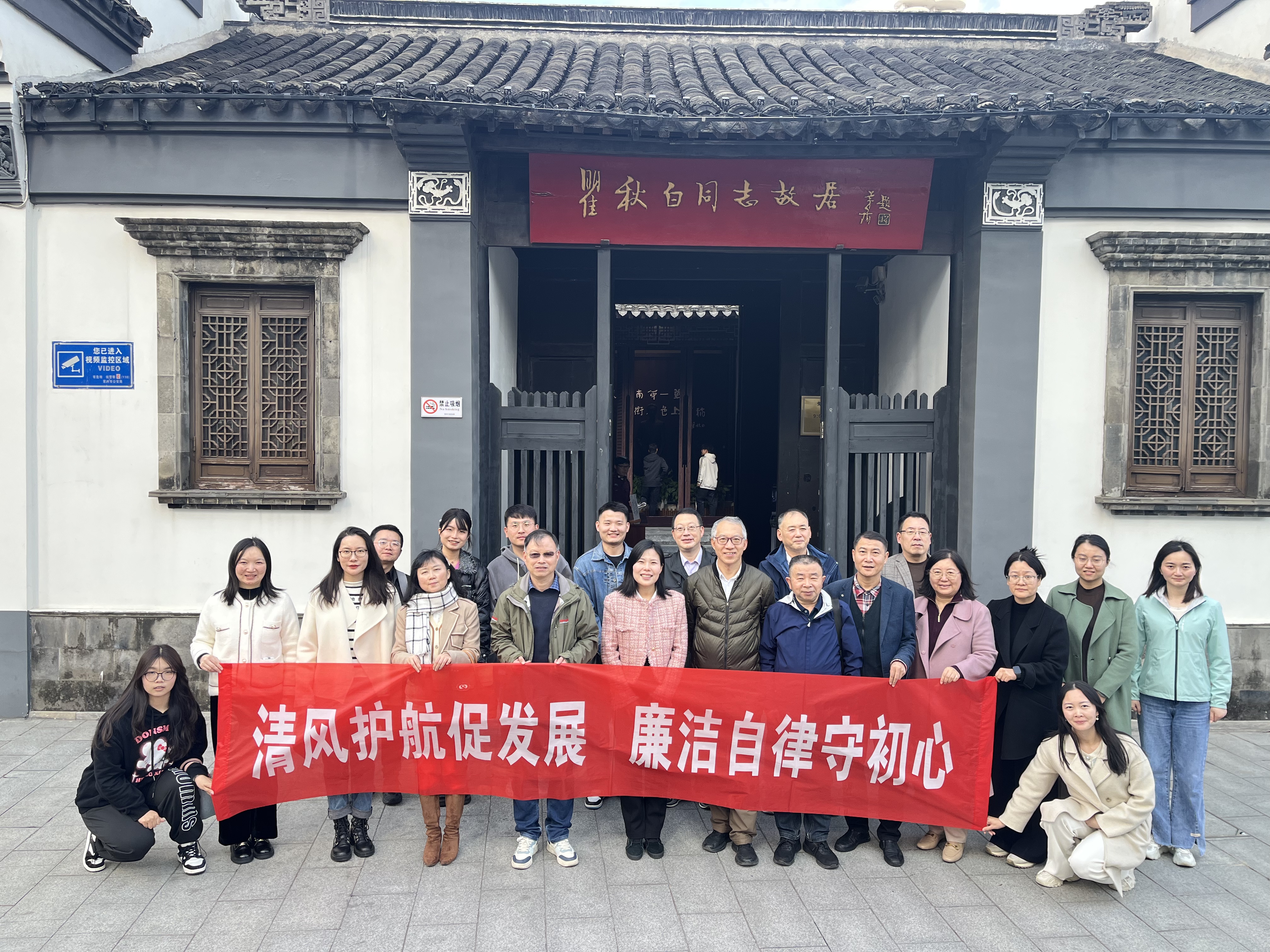 在瞿秋白同志纪念馆内,教工一行组织开展廉洁专题现场学习。何畏领学习近平总书记关于廉洁文化建设的重要论述,表示廉洁是社会主义政治文化的鲜明底色,党员、干部要坚定理想信念、坚守共产党人精神家园,不断夯实廉洁从教的思想道德基础,筑牢拒腐防变的思想道德防线,为“一流马院、幸福家园”的建设共同营造风清气正的良好环境。