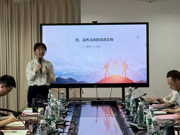 会上,何畏围绕学院思政课建设情况作专题汇报。结合课程相关数据,她系统梳理学院以习近平新时代中国特色社会主义概论课为核心的思政课程群建设成效,分析现存不足,并明确了下一阶段思政课建设的整体方向与核心任务。王智就思政课校本教材建设情况作详细介绍,具体分析了学院校本教材的建设现状以及后续工作计划。