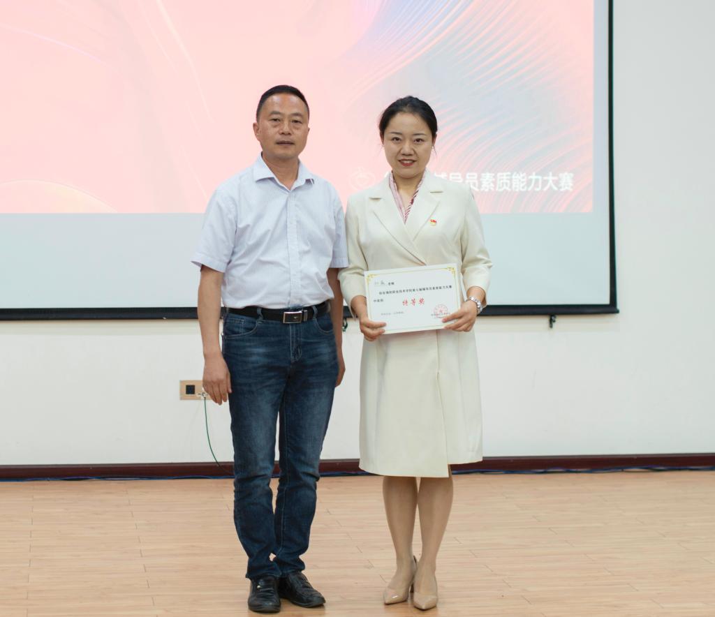 孙薇(右)在学校第七届辅导员素质能力大赛中获特等奖