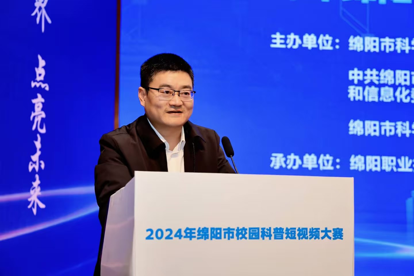 张传斌在讲话中表示,本次参赛作品内容丰富,形式多样,以独特的视角和生动的形式,展现了绵阳科技创新的蓬勃生机和独特魅力。希望通过比赛,点燃大学生们内心深处的科普创作激情,培育大学生的创新意识与创新思维,不断充实和壮大科普创作人才队伍,为科普事业的长远发展注入源源不断的新鲜血液。