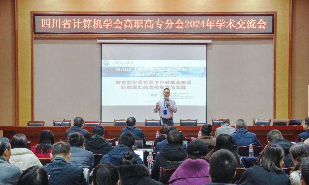 会上,西南交通大学教授黄进等专家作学术报告。参会人员围绕会议主题——“AI创新引领智慧教育新生态”进行了学术讨论和交流,分享了各自在高职高专计算机教育领域的研究成果与实践经验。